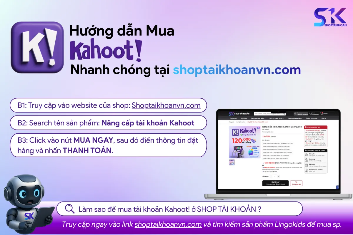Quy trình mua tài khoản Kahoot! và nâng cấp tại Shop Tài Khoản được thiết kế để đơn giản, nhanh chóng và an toàn, đảm bảo bạn có thể sử dụng các tính năng cao cấp của Kahoot! một cách dễ dàng nhất.